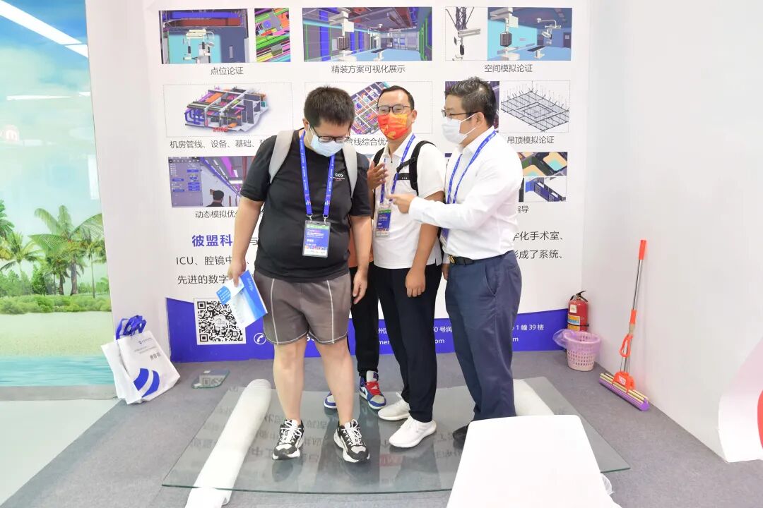 在本次展会上,我们精心打造了一间1:1数字一体化玻璃手术室,真实还原了手术室全貌,让大家能够身临其境感受现代化手术室的精妙之处。本间手术室占地40㎡,其墙面和吊顶均采用工厂预制模块,只需两天即可安装完成。玻璃手术室一经亮相,便吸引了众多观众驻足观看、咨询。